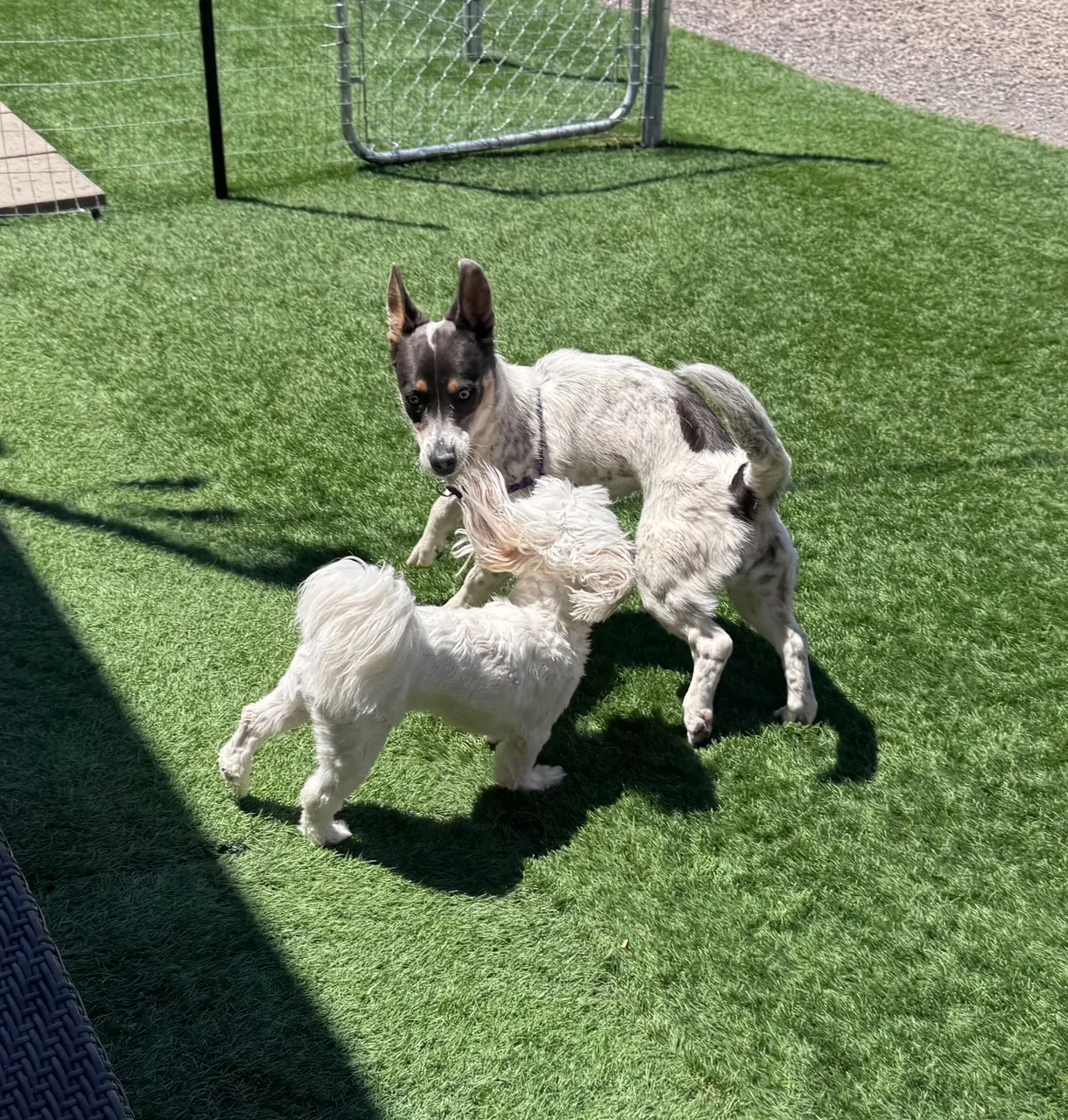 Paws Playland ABQ is designed for social butterflies who can’t have too many friends! Our daily rates include up to 9 hours of play in our air conditioned indoor play area, and our large outdoor play area with high quality turf.
