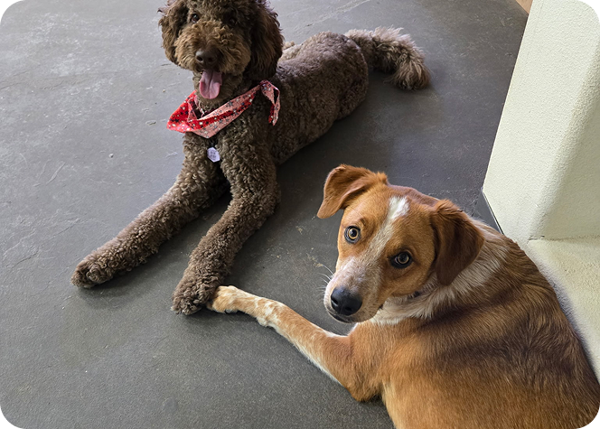 Overnight Dog Boarding at PAWS Playland ABQ our overnight boarding is designed with your dog’s comfort, safety, and happiness in mind. As a small, family-run facility, we limit our overnight guests to just 10 dogs per night—so every pup gets the personal care and attention they deserve. Each boarding dog joins our regular dog daycare program during the day, enjoying playtime, socialization, and exercise with our trusted staff and other friendly pups. Because of this, all boarding dogs must meet our daycare requirements to ensure a safe, positive experience for everyone. Whether your dog is staying for one night or a longer stay, they’ll enjoy a cozy, low-stress environment and all the love and care they’d get at home.